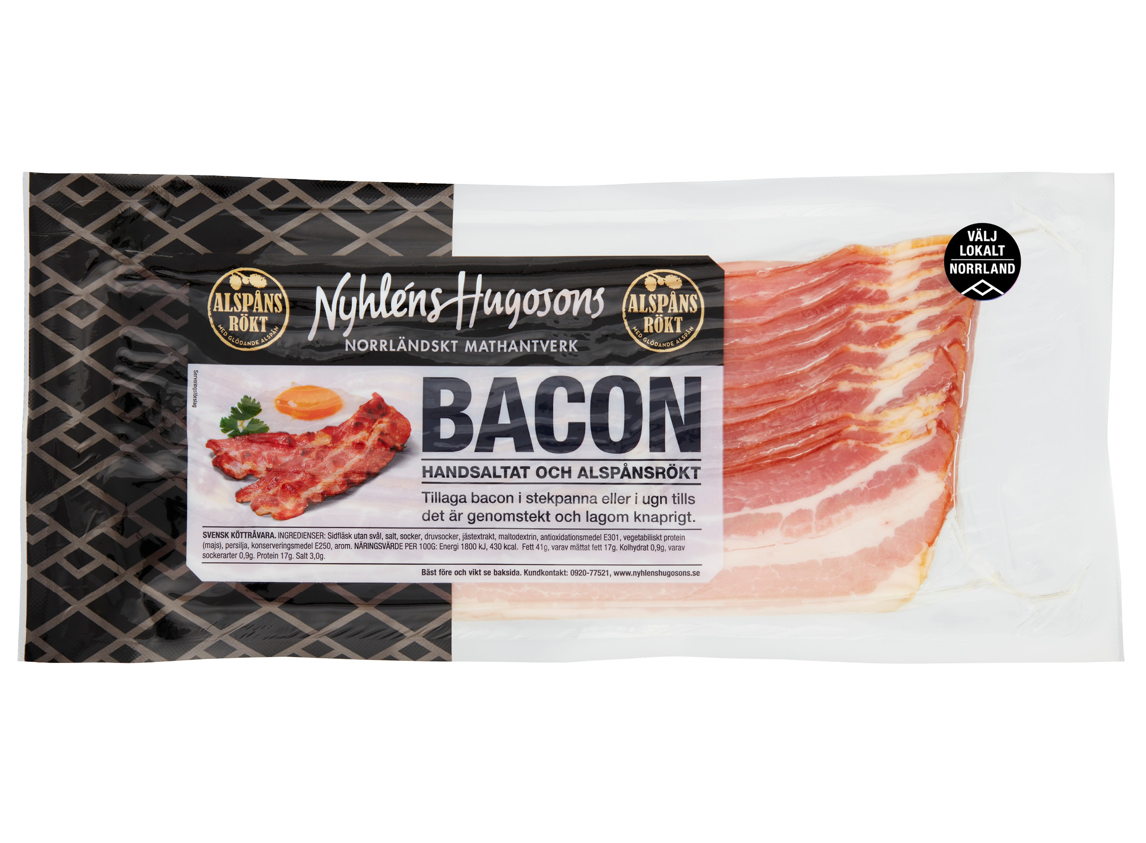 Sidfläsk utan svål, salt, socker, druvsocker, jästextrakt, maltodextrin, antioxidationsmedel E301, vegetabiliskt protein (majs), persilja, konserveringsmedel E250, arom.