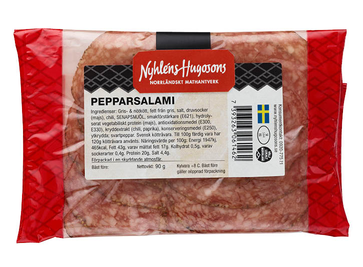 kryddextrakt (chili, paprika), konserveringsmedel (E250). Ytkrydda : Svartpeppar