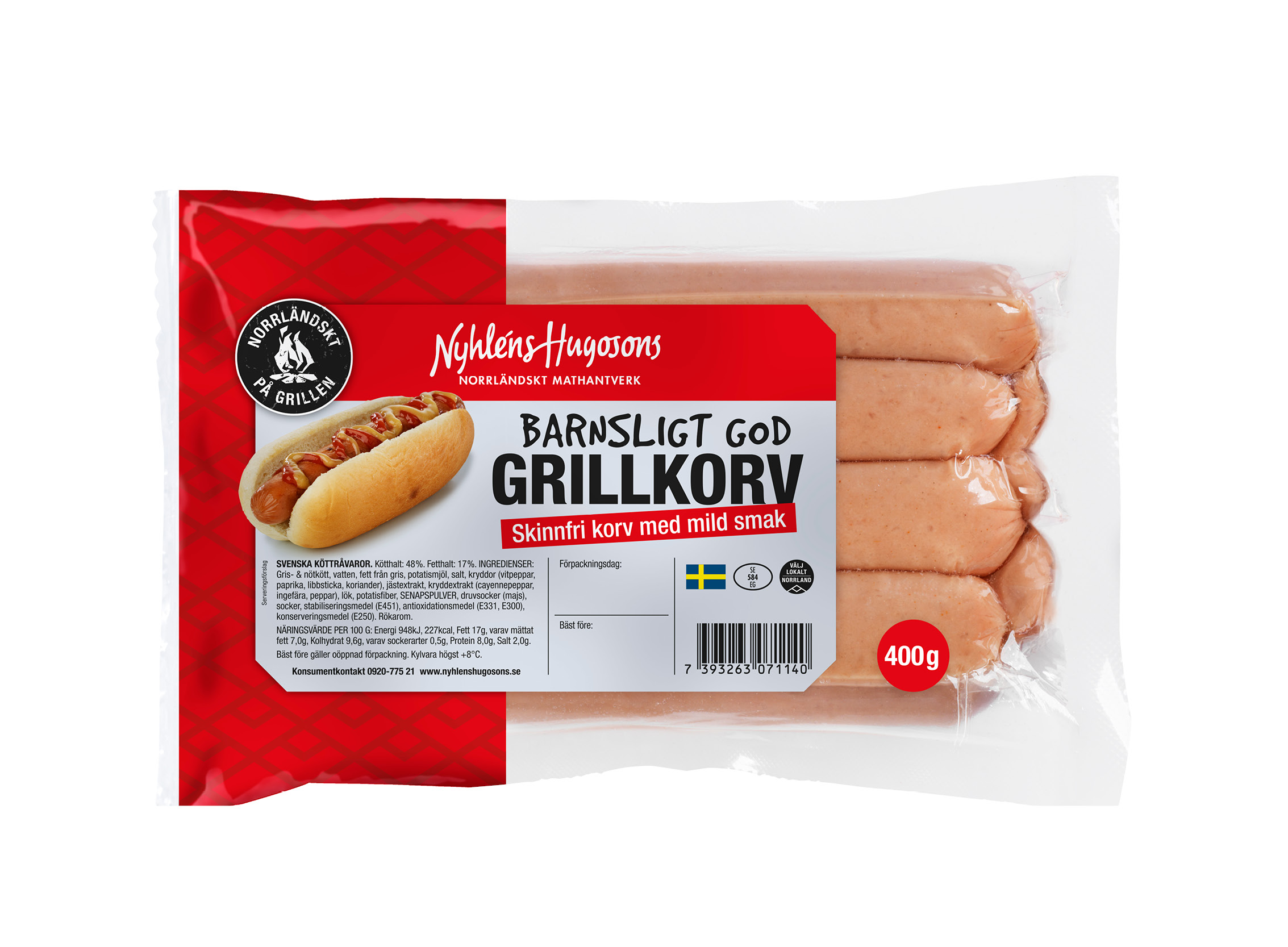 Tillverkas av kött från norrländska/svenska gårdar.