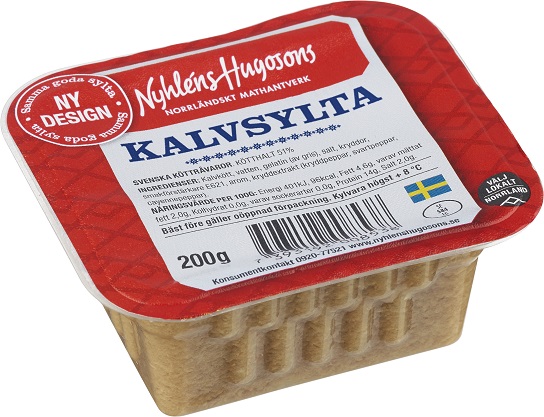 Kalvkött, vatten, gelatin (av gris), salt, smakförstärkare E621, kryddextrakt (kryddpeppar, svartpeppar, cayennepeppar), arom.