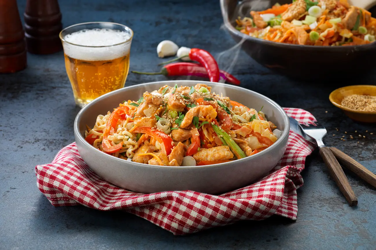 Krämig wok med strimlad fläskytterfilé Sweet Chili