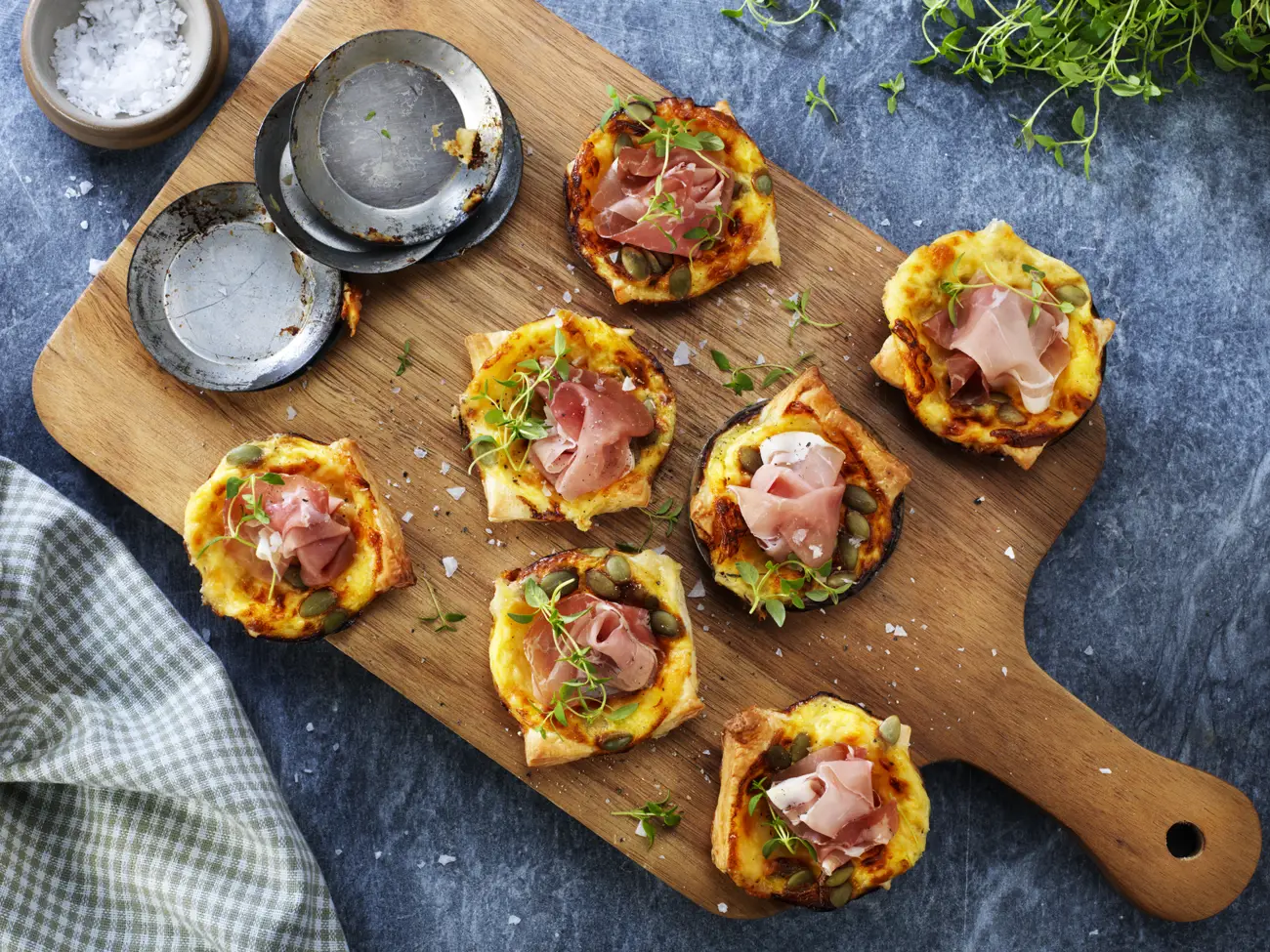 Frasiga minivästerbottenpajer med lufttorkad skinka