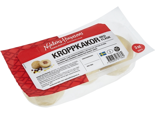 Färdigkokta kroppkakor fyllda med fläsk från norrländska/svenska gårdar.