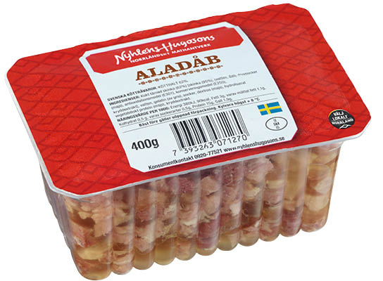 Skinka, vatten, gelatin, salt, socker, dextros, hydroliserat