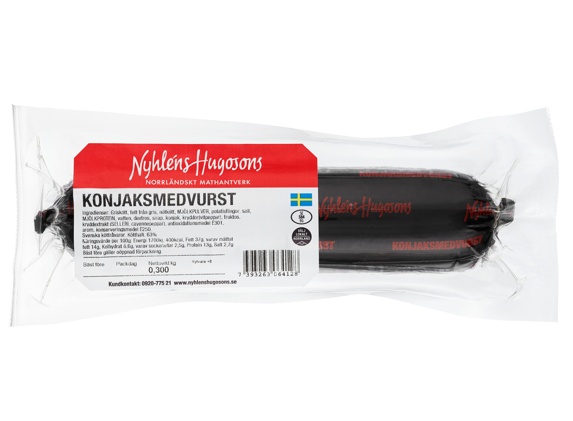 Svalrökt medvurst med smak av konjak. Tillverkas av gris och nöt från norrländska/svenska gårdar.