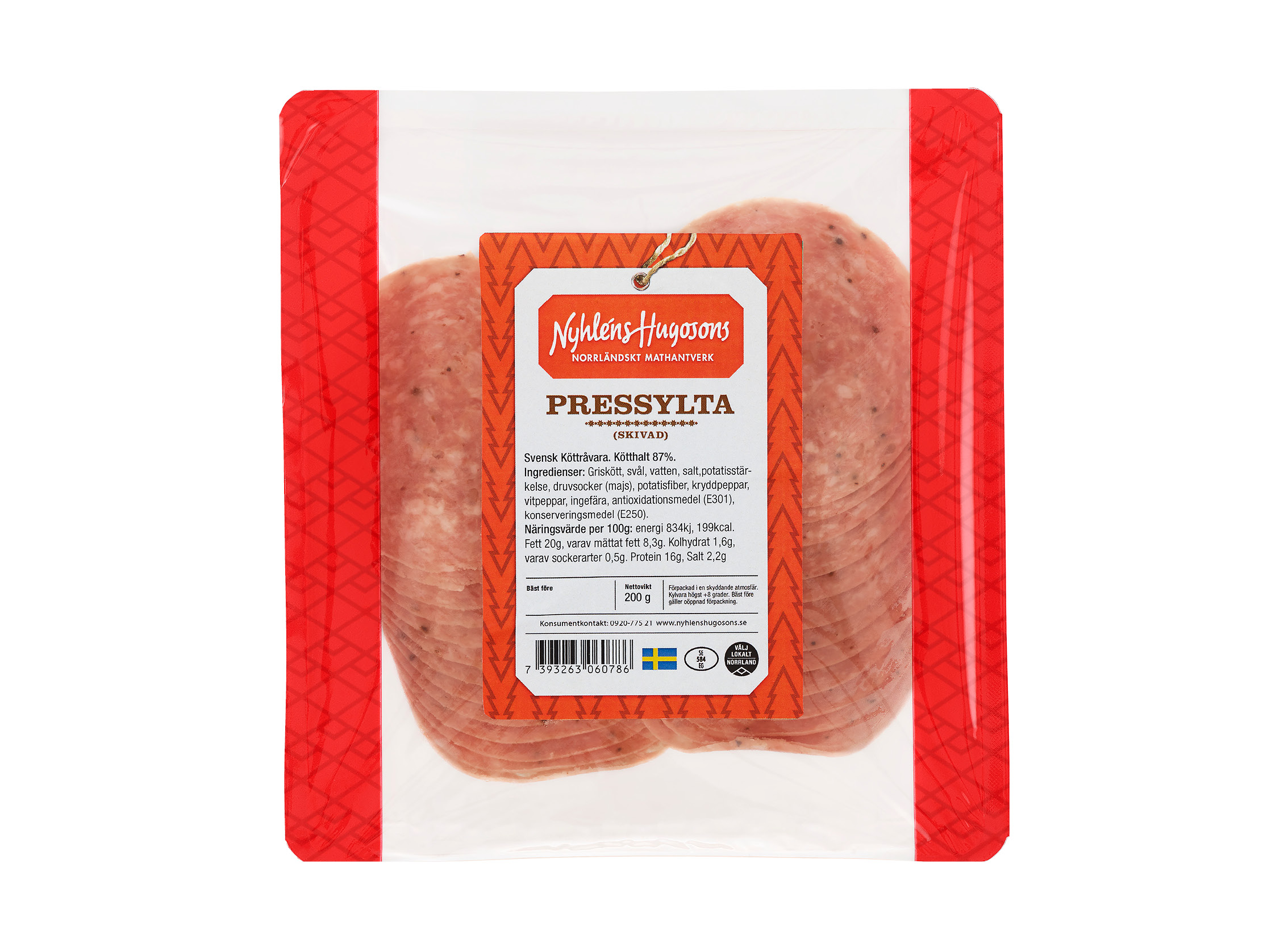 Griskött, svål, vatten, salt, potatisstärkelse, druvsocker (majs), potatisfiber, kryddpeppar, vitpeppar, ingefära, antioxidationsmedel (E301), konserveringsmedel (E250).