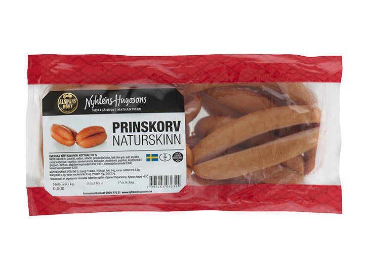 Griskött, vatten, nötkött, potatisstärkelse, fett från gris, salt, kryddor (cayennepeppar, ingefära, kardemumma, koriander, muskotnöt, paprika), kryddextrakt (peppar), dextros, stabiliseringsmedel E450, E451, antioxidationsmedel E300, konserveringsmedel E250.